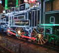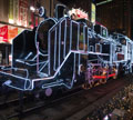機関車の汽笛と走り出す音にあわせて、イルミネーションが動き、クリスマスソングが流れます。